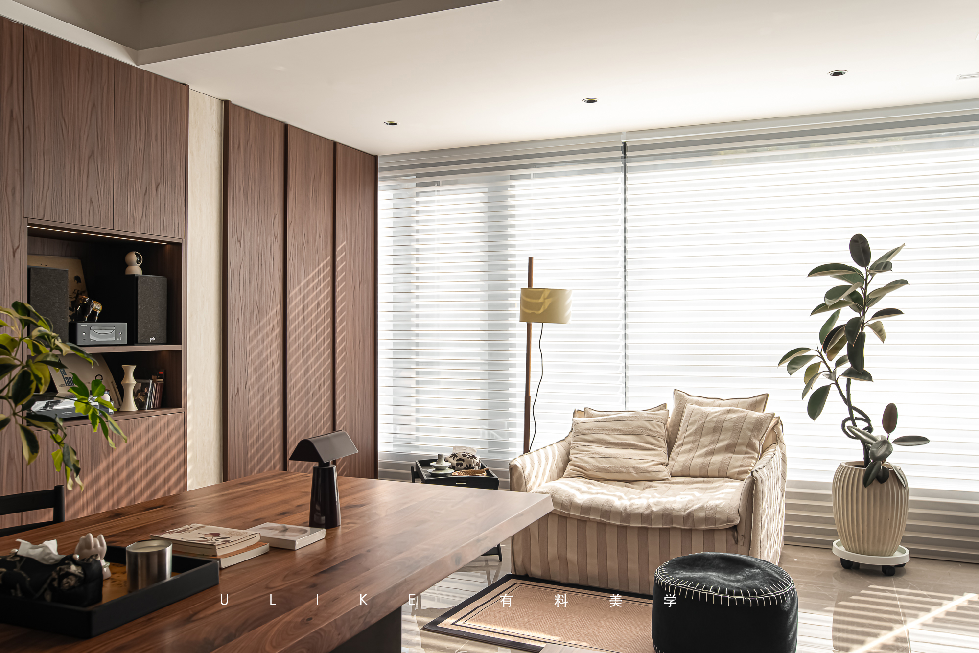 以美式、现代风格见长,用独到的眼光剖析色彩、材质,将温暖输入到空间的每一寸,加强艺术美与人文生命的连结。
