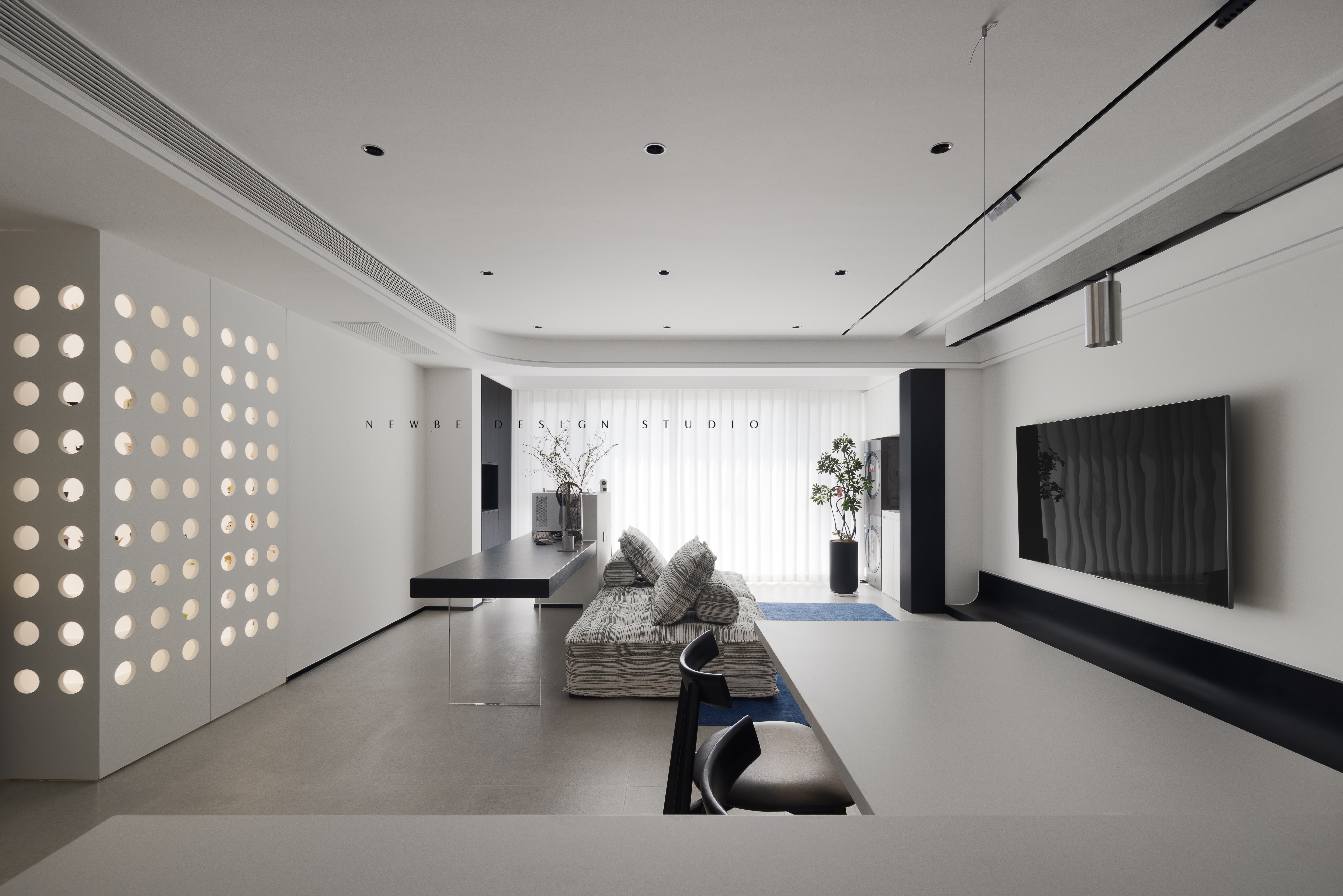 设计以现代风格见长,敢于突破、创新,尝试新手法。设计手法大气、简炼,同时注重细节的精致,对空间有很强的把握能力。