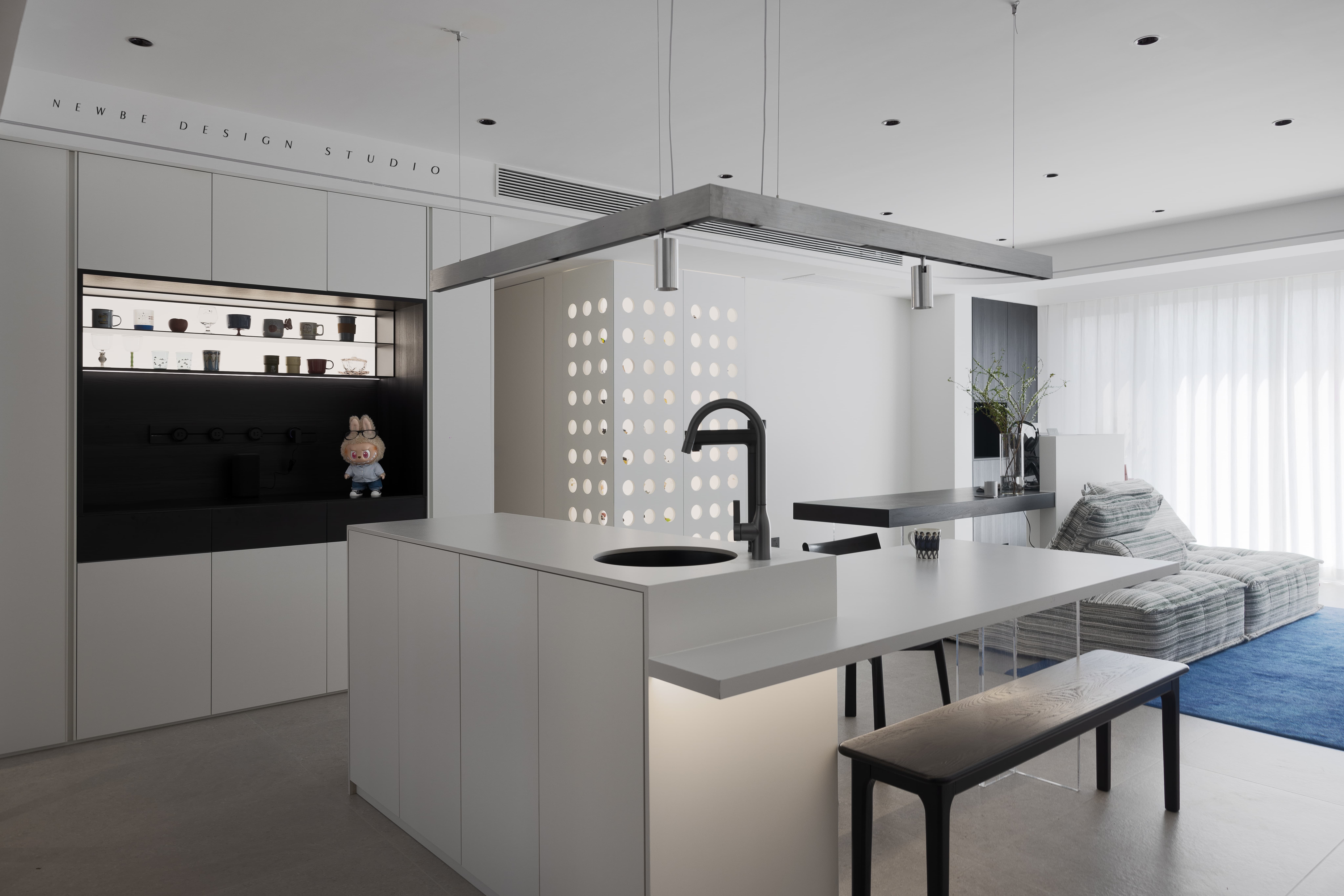 设计以现代风格见长,敢于突破、创新,尝试新手法。设计手法大气、简炼,同时注重细节的精致,对空间有很强的把握能力。